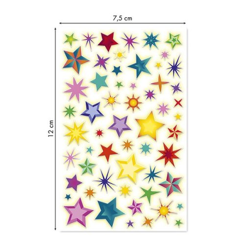 Samolepky Maildor 3D Cooky Phospho s 3D efektem jsou fosforeskující ve tmě s motivy hvězd. Balení obsahuje 1 arch s 57 samolepkami,,Rozměry balení: 7,5 x 12 cm.