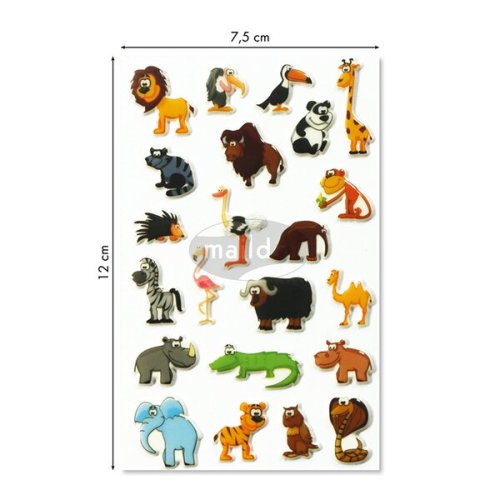 Samolepky Maildor 3D Cooky s motivy zvířátek ze savany a s efektem 3D. Balení obsahuje 1 arch s 26 samolepkami. Rozměr balení 7,5 x x12 cm.