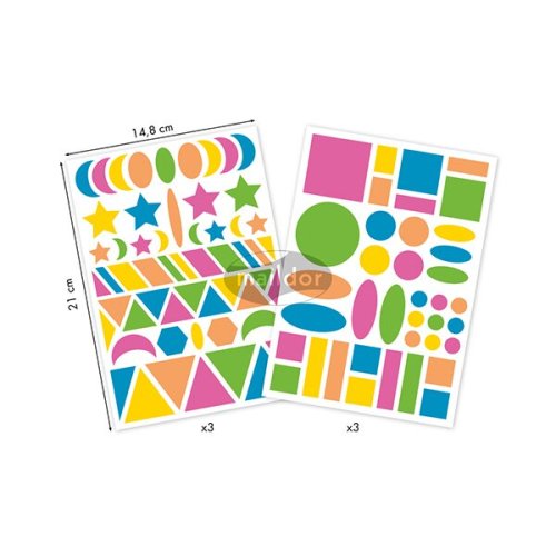 Samolepky Maildor Baby velké velikosti pro snadnou manipulaci s dětskými motivy geometrických tvarů. Balení obsahuje 6 listů, 2 motivy po 3 ks. Samolepky lze sloupnout a znovu nalepit,Vhodné pro děti již od 2 let. Rozměry balení: 14,8 x 21 cm.