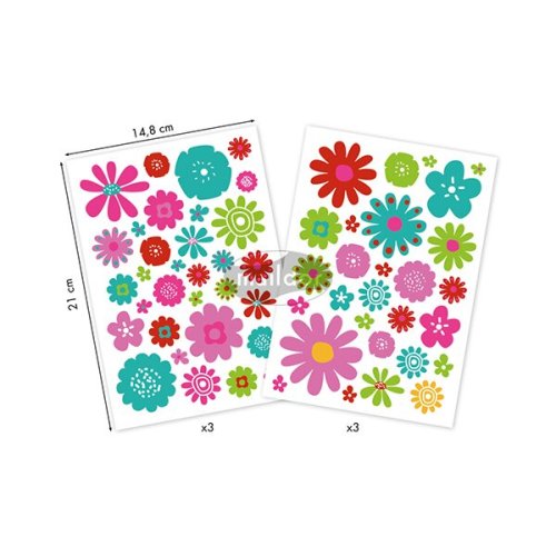 Samolepky Maildor Decoraty s motivy květin. Možnost kombinování výtvarných aktivit jako je kreslení a použití samolepek. Balení obsahuje 6 listů, 2 motivy po 3 ks. Samolepky lze sloupnout a znovu nalepit. Rozměry balení: 14,8 x 21 cm.