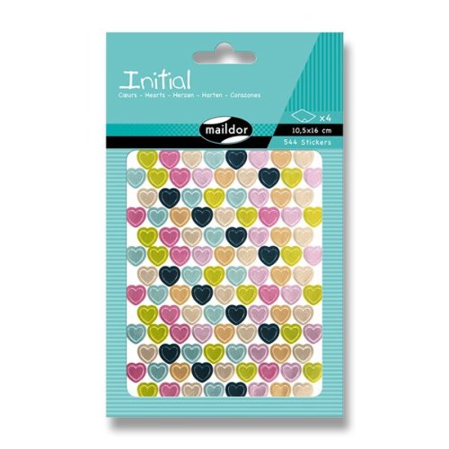 Samolepky Maildor Initial Metallic menší velikosti s motivem srdíček s metalickým efektem. Balení obsahuje 4 listy, 2 motivy po 2 ks. Rozměry balení: 10,5 x 16 cm.