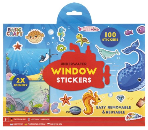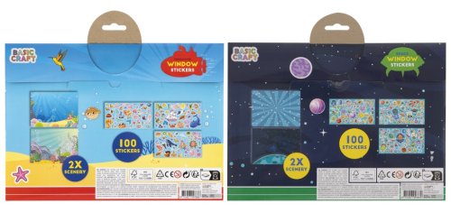 Samolepky na okna 100 pcs – balení obsahuje více jak 100 ks samolepek na okna. Lekce odstanitelné, nezanechávají lepidlo. Dva druhy vesmír a podvodní svět.