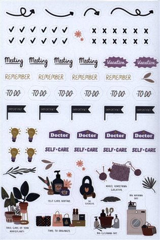 Ozdobte svůj diář, Bullet Planner nebo plánovací kalendář s našimi samolepkami. Balení obsahuje osm archů. Čtyři archy jsou inspirovány každým z ročních období, další čtyři archy obsahují praktické samolepky pro zvýraznění klíčových událostí jako jsou schůzky, dovolená nebo lékařské návštěvy. Vytvoříte s nimi i efektivní to-do listy, které usnadní organizaci vašeho každodenního života.