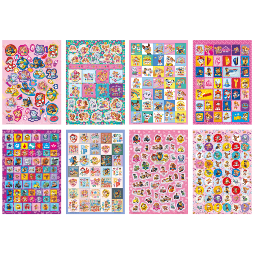 Třpytivé samolepky s motivem postaviček z pohádky Tlapková patrola. V sešitu 8 archů. Rozměry 15x21 cm. Věk 3+