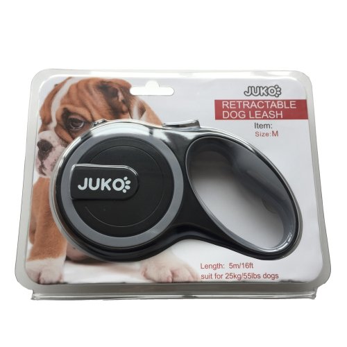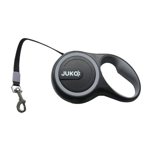 Na konci navíjeného pásku je umístěna karabina pro připnutí k obojku.