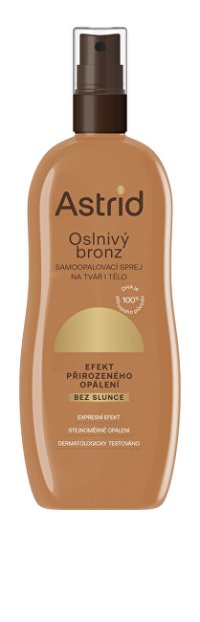 Samoopalovací sprej přináší nový standard v péči o pokožku. Díky unikátnímu složení dosáhnete přirozeného zlatavě-bronzového opálení bez škodlivého slunečního záření. Inovativní složení zajišťuje rychlé a rovnoměrné opálení, které vydrží déle než kdy dříve. Hydratační komplex s betainem a glycerinem nejenom skvěle vyživuje, ale také prodlužuje efekt opálení, čímž zajišťuje sametově jemnou pokožku. Navíc je produkt vegan, což znamená, že je šetrný nejen k vaší pokožce, ale i k přírodě. Vyzkoušejte Astrid sun samoopalovací sprej a užijte si krásné opálení po celý rok.
