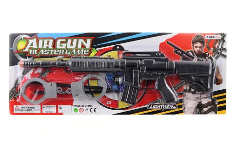 Plastová sada obsahuje samopal, 2 náboje s přísavkou a pouta. Baleno na kartě . Rozměry balení cca 17x45x2 cm. Velikost zbraně 40 cm. Věk 3+