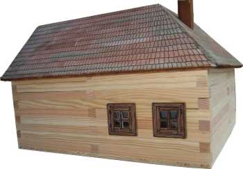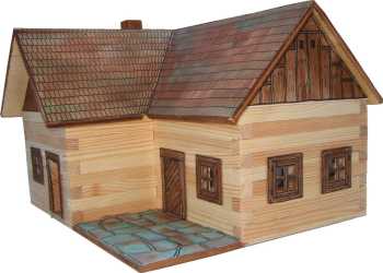 Dřevěná slepovací stavebnice Walachia - Samota. Slepovací stavebnice Walachia jsou dřevěné modely domečků a staveb z Valašského kraje v měřítku 1:32. Základem jsou dřevěné hranolky 9x9 mm a k tomu jsou v sadě vždy všechny papírové doplňky - okna, dveře, střešní části atd. Pro lepení se používá lepidlo Herkules, není však součástí stavebnice. Přiložený je montážní návod a malé kapitoly z historie lidové architektury. Níže je označení obtížnosti číslem 1 - 5, přičemž 1 je nejlehčí. Rozměry: 24 x 20 x 15 cm. Počet dílů stavebnice: 154. Obtížnost: 3