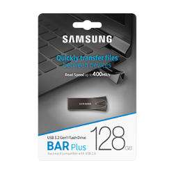 Tradiční flashdisk v neotřelém designu, tak by se dalo nahlížet na USB úložiště nové generace Samsung BAR Plus. Je vhodný pro každodenní činnost, přenášení a archivaci důležitých pracovních dat nebo multimediálních souborů před dlouhou cestou. Vyznačuje se mimořádnou rychlostí díky rozhraní USB 3.2 Gen1 a působivým vzhledem.