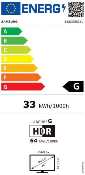 Napájení: AC 100~240V, Externí adaptér Spotřeba [W]: 33,2 W Stand By režim [W]: 0,50 W Třída energetické náročnosti: G
