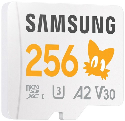 Paměťová karta formátu Micro SDXC nabízí kapacitu 256 GB. Disponuje rychlostí čtení až 180 MB/s a rychlostí zápisu až 130 MB/s. Samozřejmostí je pak odolnost vůči vodě, nárazům, extrémním teplotám, magnetům i rentgenovému záření. Součástí balení je SD adaptér.