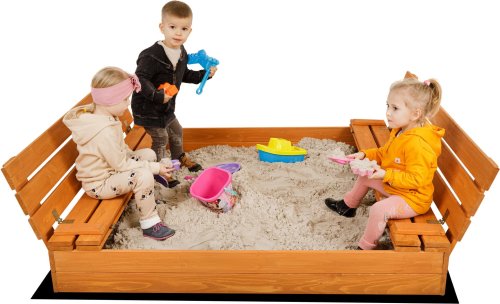 Dětské pískoviště z přírodního materiálu je ideálním doplňkem každé zahrady. Děti se zabaví na dlouhé hodiny a prostřednictvím hry v písku si zlepší své manuální a koordinační dovednosti. Pískoviště je vyrobené z jehličnatého dřeva. Jedná se o výrobek prvotřídní kvality, nikoli o odpad z výroby jiných dřevěných výrobků. Použitý materiál prošel procesem sušení, hoblování, broušení a pečlivou ruční impregnací. Desky mají hladké hrany a pískoviště je tak vhodné pro děti již od 6 měsíců. V rozloženém stavu má dvě lavičky pro pohodlné usazení dětí nebo dohlížejících rodičů. Po ukončení hry se lavičky složí a pískoviště jimi snadno zakryjete. Pískoviště má dno z odolné netkané textilie a plachtu pro zakrytí a ochranu před povětrnostními vlivy. Rozměry složeného pískoviště jsou 100 x 100 x 20 cm. Tloušťka dřevěných desek je 1,8 cm. Balení obsahuje: