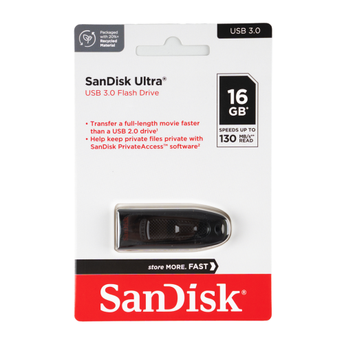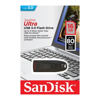 SanDisk Ultra USB 3.0 Flash Drive kombinuje rychlejší přenos dat a velkorysou kapacitu v kompaktním, stylovém balení.