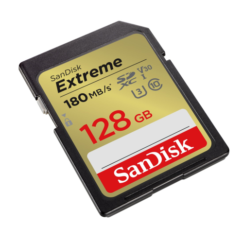 SanDisk Extreme 128GB SDXC Memory Card 180 MB/s and 90 MB/s, UHS-I, Class 10, U3, V30