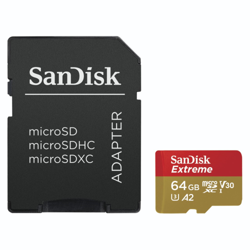 SanDisk Extreme microSDXC 64GB pro akční kamery + SD Adapter 170MB/s and 80MB/s, A2 C10 V30 UHS-I U3