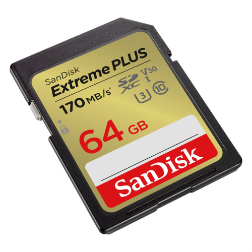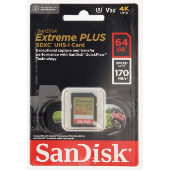 SanDisk Extreme PLUS 64 GB SDXC Memory Card 170 MB/s and 80 MB/s, UHS-I, Class 10, U3, V30