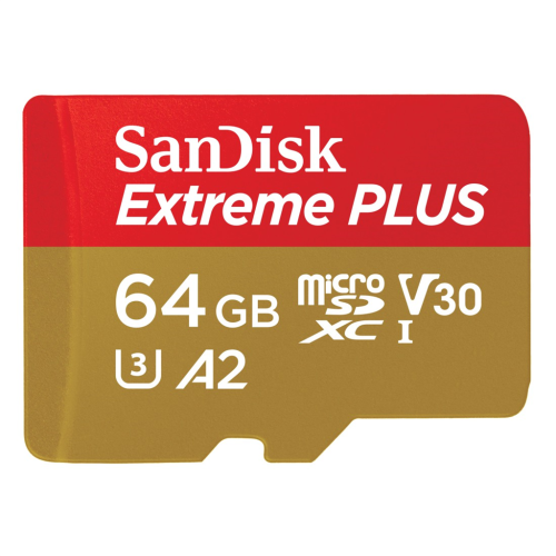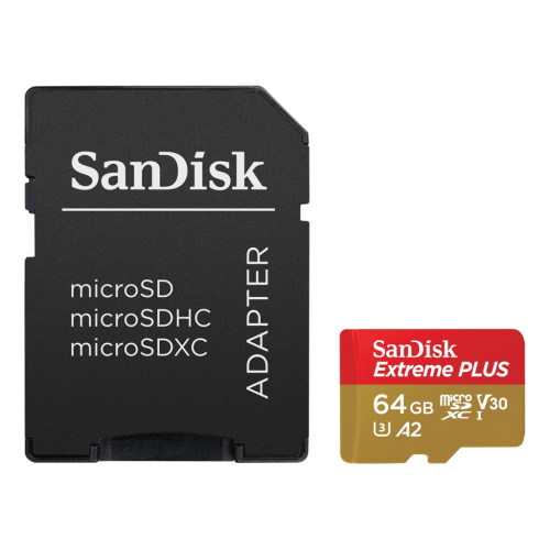 SanDisk Extreme PLUS microSDXC 64GB + SD Adapter 200MB/s and 90MB/s A2 C10 V30 UHS-I U8