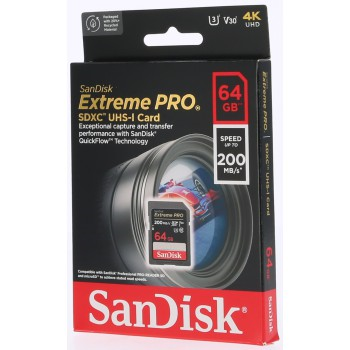 SanDisk Extreme PRO 64GB SDXC Memory Card 200MB/s and 90MB/s, UHS-I, Class 10, U3, V30