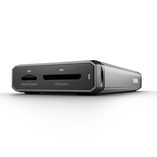 s jedním slotem na kartu SD Express a jedním slotem na kartu microSD™ Express umožňuje snadné stahování a zálohování dat v terénu, nabízí kompatibilitu s dokovacími stanicemi SanDisk Professional PRO-DOCK 42 a podporuje karty SD a microSD™ UHS-I