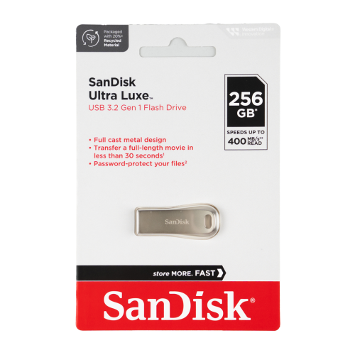 SanDisk Ultra Luxe USB ™ 3.2 Gen 1 flash disk zajišťuje rychlé přesuny Vašich dat mezi jednotlivými médii, tím zkrátí Vaše čekání. Díky USB 3.2 Gen 1 přenese Vaše data rychleji než standardní USB 2.0. Přeneste film v plné délce na disk za méně než 30 s! Stylový elegantní kovový design je navržen tak, aby byl dostatečně pevný a odolával nárazům. Umožňuje nastavitelnou ochranu heslem, takže si můžete být jistí, že Vaše data zůstanou soukromá a viditelná je pro Vámi zvolené osoby.