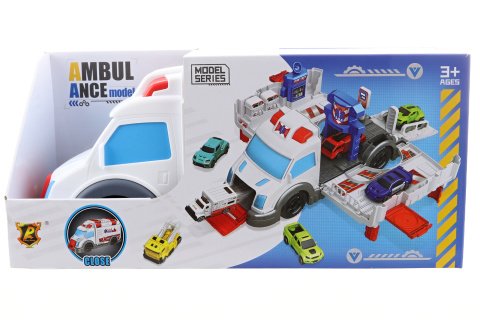 Rozkládací sanitka - lze rozložit na záchranářskou základnu. V balení 2 malá záchranářská auta. Materiál plast. Auto je na volný chod. Rozměry auta 29x13x9 cm. Rozměry balení 30x14x10 cm. Věk 3+
