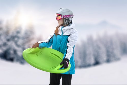Sáňkovací talíř Supernova zelená. Průměr 70 cm. Váha 1,19 kg. Nosnost 100 kg. Provozní teplota -20 až 70 °C. Zatáčení díky naklonění do strany, brzdění zakloněním. Rukojeti integrované do obvodu talíře. Protiskluzová úprava povrchu.