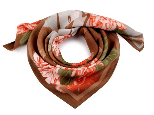 Šátek květy 65x65 cm - béžová tmavá oranžová