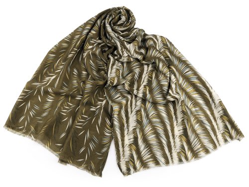 Velký šátek se vzorem rozčepýřených listů je příjemný a prodyšný, bude pohodlný v jakékoli situaci. Tento typ dezénu se skvěle kombinuje s jakýmkoliv outfitem. Ať už se chystáte do práce nebo na neformální setkání s přáteli, tento šátek je praktickým a stylovým doplňkem, který dodá vašemu vzhledu šmrnc. Na koncích je zakončený třásněmi dlouhými 1 cm. Některé šátky mohou mít špatné štítky, skutečné složení je polyester a viskóza. Omlouváme se za toto nedopatření a děkujeme za pochopení.