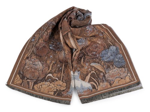 Velký luxusní šátek typu kašmír je ozdobený květinovým motivem.