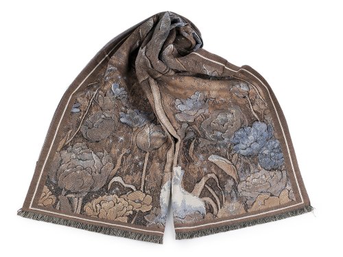 Velký luxusní šátek typu kašmír je ozdobený květinovým motivem.