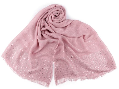 Elegantní bavlněný šátek s drobnými flitry je dokonalým doplňkem pro každou příležitost. Je oboustranný, flitry krásně zachycují světlo, vašemu outfitu dodají nádech luxusu. Materiál šátku je jemný a příjemný na dotek. Konce šátku jsou ozdobené jemnými třásněmi dlouhými 2 cm. Šátky mohou mít špatné štítky, skutečné složení je bavlna a polyester. Omlouváme se za toto nedopatření a děkujeme za pochopení.