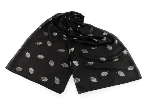 Šátek s metalickým potiskem listů je velice příjemný na dotek, je vzdušný a lehký.
