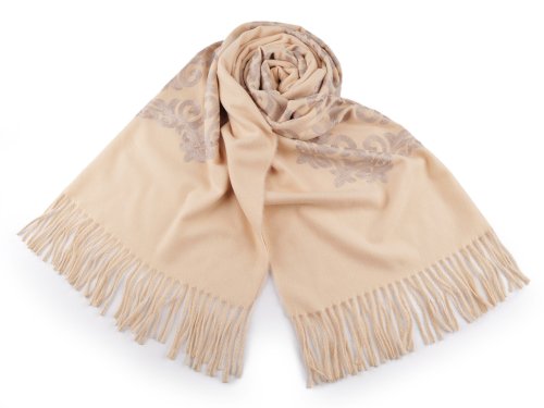 Velká vlněná šála s ornamentální výšivkou je velice kvalitní, komfortně vás zahřeje v sychravých dnech. Je vyrobená z materiálu příjemně hebkého na dotek. Na koncích je zakončená dlouhými třásněmi. Můžete ji nosit do práce i do společnosti, výšivka má jemný lesk, elegantní dozdobí váš outfit. Upozorňujeme zákazníky, že složení na štítcích se může lišit, materiál je vlna, polyester a viskóza.