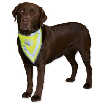 Reflexní šátek pro psy. Je vyrobený z polyesteru. Zajistí bezpečné venčení i za tmy.