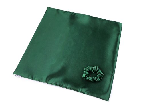 Saténová Beauty sada na spaní, povlak a scrunchie gumička - zelená tm.
