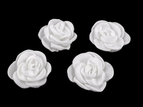 Saténový květ růže k našití a nalepení Ø5 cm - bílá (4 ks)