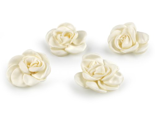 Textilní saténové květy jsou precizně zpracované. Mají jemný saténový lesk. Ve spodní části mají filcové kolečko, díky kterému je můžete pohodlně kamkoliv upevnit. Můžete je našít či nalepit jako ozdobu na šaty, halenky apod. Použití: Květ můžete našít jako ozdobu na společenské šaty, halenky, trička nebo svetry. Je vhodný i na zdobení klobouků, čepic a čelenek do vlasů. Můžete ho také pomocí lepidla přilepit na brožový můstek a vytvořit zajímavý šperk.