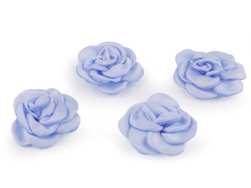 Textilní saténové květy jsou precizně zpracované. Mají jemný saténový lesk. Ve spodní části mají filcové kolečko, díky kterému je můžete pohodlně kamkoliv upevnit. Můžete je našít či nalepit jako ozdobu na šaty, halenky apod. Použití: Květ můžete našít jako ozdobu na společenské šaty, halenky, trička nebo svetry. Je vhodný i na zdobení klobouků, čepic a čelenek do vlasů. Můžete ho také pomocí lepidla přilepit na brožový můstek a vytvořit zajímavý šperk.