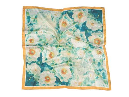 Saténový šátek s potiskem je velice kvalitní, elgantní, využijete jej na každodenní nošení.