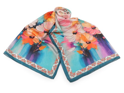 Elegantní saténový šátek s květy představuje luxusní doplněk, který okamžitě povýší jakýkoliv outfit. Je lehounký a měkký, jemné lesklé provedení a nádherný květinový vzor vytvářejí dojem exkluzivity. Využijete jej do společnosti i na všední nošení ke kabátu, saku, halence, svetříku, šatům apod. Bude skvělým dárkem pro každou ženu, která si potrpí na styl a kvalitu.