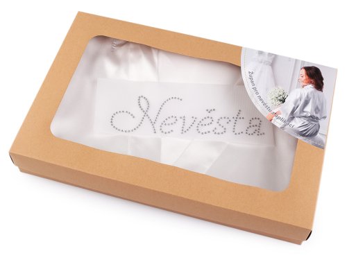 Saténový župan s krátkým rukávem zalichotí každé postavě. Pro nevěsty je jejich svatební den výjimečný a župánek při přípravách zajistí pohodlí. Zároveň bude nádherným doplňkem videí a fotografií ze zákulisí příprav. Součástí balení je hot-fixová kamínková aplikace s nápisem "Nevěsta" či anglicky "Bride". Nevěsta se může sama rozhodnout, jestli použije župan bez aplikace, nebo si ji na něj nažehlí. Návod je uvnitř balení. V pase se župan zavazuje saténovým páskem. Župan je zabalený v průhledné dárkové krabici. Rozměry: Délka županu: 92 cm Obvod přes prsa: 124 cm Obvod přes boky: 124 cm Délka rukávu: 27 cm Rozměry kamínkové aplikace jsou cca 5,5 x 18,5 cm.