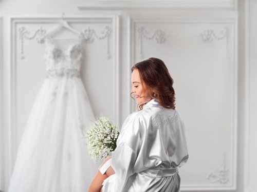Saténový župan pro nevěsty s aplikací - (EN) Off White
