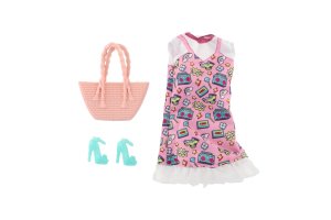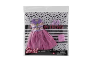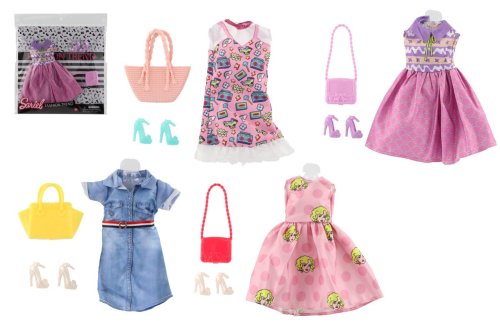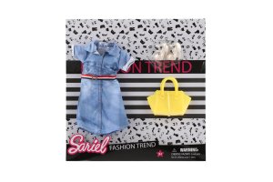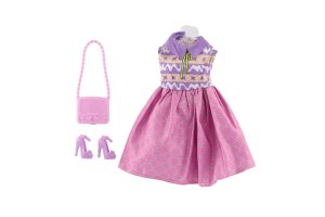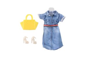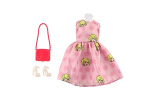Oblečky pro panenky s doplňky, které žádné stylové panence nesmí chybět! Obsah balení: šaty, boty a kabelka. Rozměr balení: 21 x 21 cm