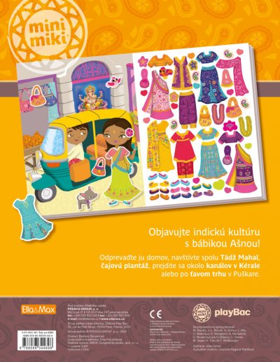 Novinka ze série, která patří k našim nejprodávanějším, přibližuje malým čtenářům něco z indické kultury a kouzla dalekého Orientu. S panenkou Ašnou tím nejjednodušším a zároveň hravým způsobem poodhalí každodenní život tamních lidí, jejich zvyky nebo navštíví zajímavá místa. Díky tomu děti získají a zpřesní si své představy o cizí zemi, jejích obyvatelích, folklóru či módě. Více než 300 samolepek, atraktivní obrázky a dvojjazyčné texty učiní jejich poznávání ještě zajímavějším a komplexnějším.