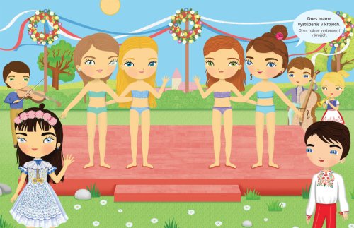 Objevujte českou kulturu s panenkou Eliškou! Anebo byste raději jako průvodkyni po vlasti zvolili Aničku, Adélku, případně Viktorku? Vyberte si panenku podle vlastního vkusu - každá z nich vás vezme na nejznámější místa našeho hlavního města Prahy, navštívíte spolu folklorní vystoupení, ples, podniknete túru, výlet na pohádkový zámek Hluboká, budete kempovat u Máchova jezera a v zimě si zalyžujte v Krkonoších. S více než 300 samolepkami a překrásnými obrázky je objevování jedna radost! Titul ze série, která patří k našim nejprodávanějším, přibližuje malým čtenářům tím nejjednodušším a zároveň hravým způsobem něco z kultury naší země a představuje jim známá místa a české památky.