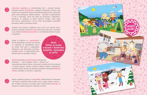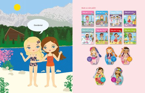Novinka ze série, která patří k našim nejprodávanějším, přibližuje malým čtenářům něco z kultury sousední země – Slovenska. Knížka jim tím nejjednodušším a zároveň hravým způsobem poodhaluje každodenní život tamních lidí, představuje oblíbená místa nebo známé slovenské památky. Děti díky tomu získají a zpřesní si své představy o zemi, která byla dlouho součástí té naší, jejích obyvatelích, folklóru či módě. Více než 300 samolepek, atraktivní obrázky a dvojjazyčné texty činí jejich poznávání ještě zajímavějším a komplexnějším.