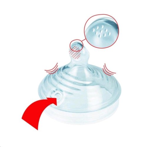 Savička Nature Sense Nuk L. Počet otvorů-9. Vhodná pro pro umělou kojeneckou výživu. Speciální tvar typický pro savičky NUK s ortodontickou antikolikovou savičkou je modelován podle mateřské bradavky při kojení. Ponechává dostatek prostoru pro přirozené sací pohyby jazyka i čelisti. Vylepšený systém proti polykání vzduchu při pití Anti Colic Air System zajišťuje přirozený tok mléka, aby dítě pilo uvolněně bez polykání vzduchu. Lahvička je doporučena porodními asistentkami a pediatry. Charakteristika savičky:<BR>- měkká a flexibilní, aby přizpůsobila svůj tvar dětským ústům stejně jako bradavky<BR>- několik malých otvorů stejně jako v matčině bradavce pro hladký a přirozený tok<BR>- zploštělá spodní část – dostatek prostoru pro jazyk<BR>- vylepšený Anti-kolikový ventil<BR>- ohebná savička<BR>- široká opora rtů<BR>- klinicky testováno<BR>Balení obsahuje 2 ks. Neobsahuje BPA.