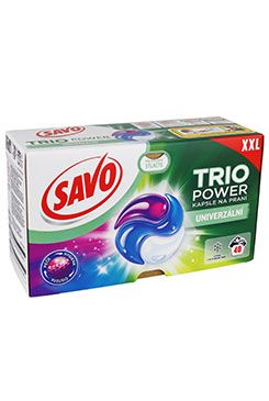 Savo gelové kapsle na praní vám zaručí hygienicky čisté a překvapivě voňavé prádlo. Účinně odstraňuje odolné skvrny a zachovává intenzitu barev vašeho oblečení. Savo extra síla tříkomového složení zajistí: