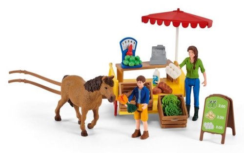 Jedinečné figurky, které jsou jako živé! Figurky a doplňky Schleich Farm World jsou propracovány do posledního detailu. Pronikni do světa zvířat, nasbírej figurky a objev tak zvířata naší planety. Ben a jeho matka Laura naloží mobilní farmářský stánek čerstvými produkty přímo z jejich farmy. Na jejich vůz se vejdou šťavnatá jablka, čerstvě snesená vejce, čerstvý salát, brambory z pole, chlazené mléko a křupavý chléb. Jakmile je vše naloženo, zapřáhnou svého pracovitého poníka k vozu a vydají se prodávat své produkty. Mají s sebou dost jablek? Schleich jsou realistické a do detailů propracované figurky, kde se designeři soustředili na filozofii těla, strukturu svalů a celkový výraz postavičky. Děti si tak mohou hrát se zvířátky z celého světa, pravěkými dinosaury, filmovými a pohádkovými postavičkami, které jsou věrnou kopií svých předloh, a kouzelnými elfy a vílami z magického světa Bayala. Vhodné pro děti od 3 let.