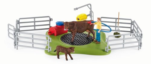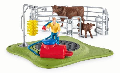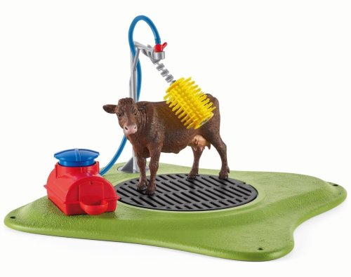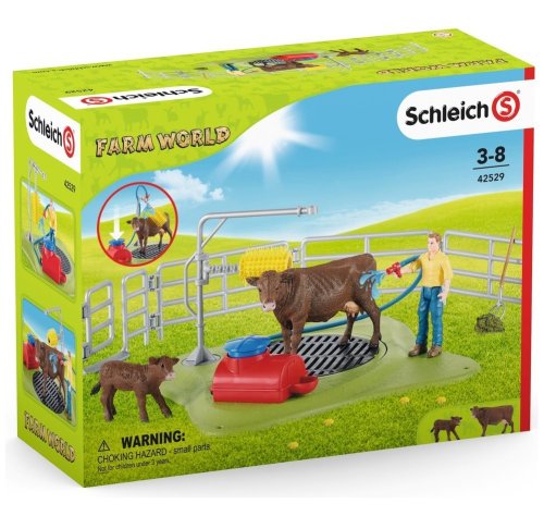 Dnes je čas na koupání! V nové mycí stanici pro krávy ze Schleich® FARM WORLD je pěkně rušno! Krávy přicházejí z pastvy, a než se vrátí do stáje, musejí se umýt.